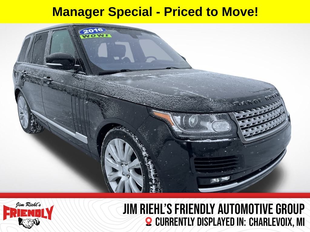 Welcome to Jim Riehlâs Friendly Ford, located in the beautiful city of Charlevoix! Thank you for stopping by to take a look at our 2016 Land Rover Range Rover 5.0L V8 Supercharged. This previously loved vehicle has been fully inspected, and any safety concerns have been addressed. This vehicle is part of our as-is collection, meaning we do not provide any kind of warranty or guarantee on these cars, but they are priced accordingly. These vehicles have only been safety inspected. Thank you for choosing Jim Riehlâs Friendly Ford for your vehicle needs, we look forward to servicing them! Call, Click or stop by today to see why everyone is choosing Jim Riehl for their next vehicle!